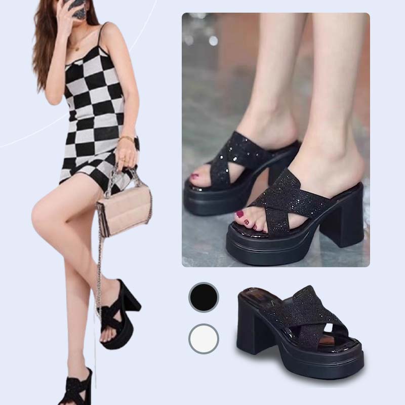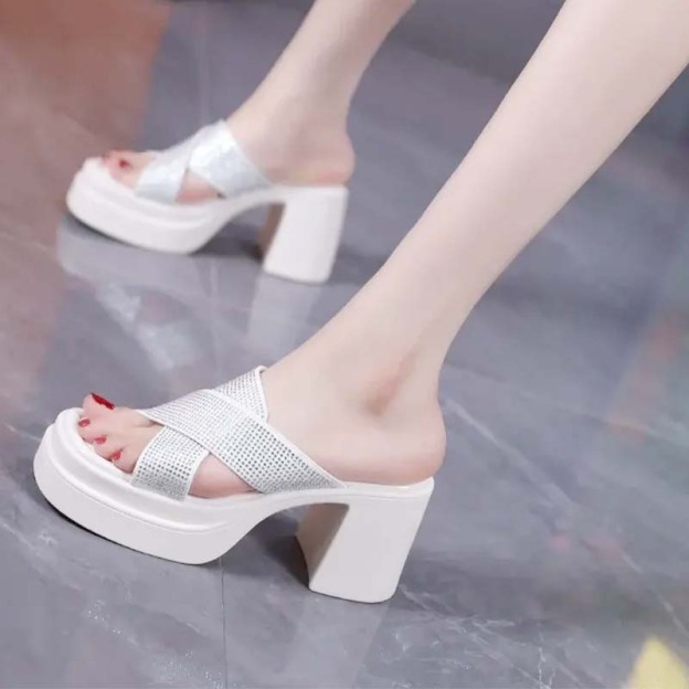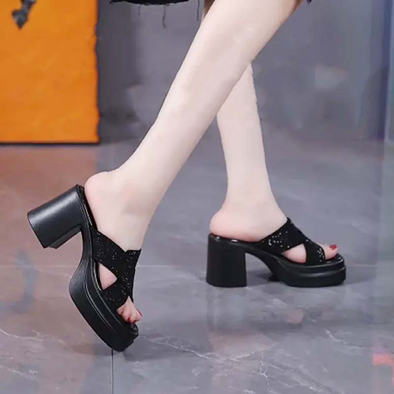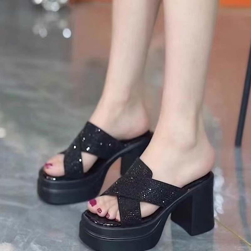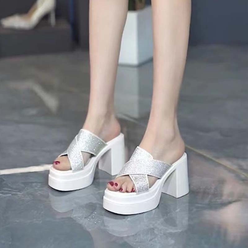 Package Includes:1*Rhinestone-Embellished High Heel Sandals with Thick Soles