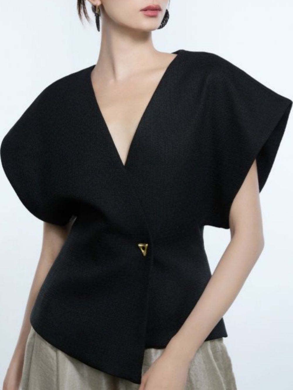 Fabric Name: ChenilleMain Fabric Component: SpandexMain Fabric Component 2: SpandexPattern: Solid ColorStyle: Button, AsymmetricalSleeve Length: Short SleeveCraftsmanship: Easy-Wear Finish