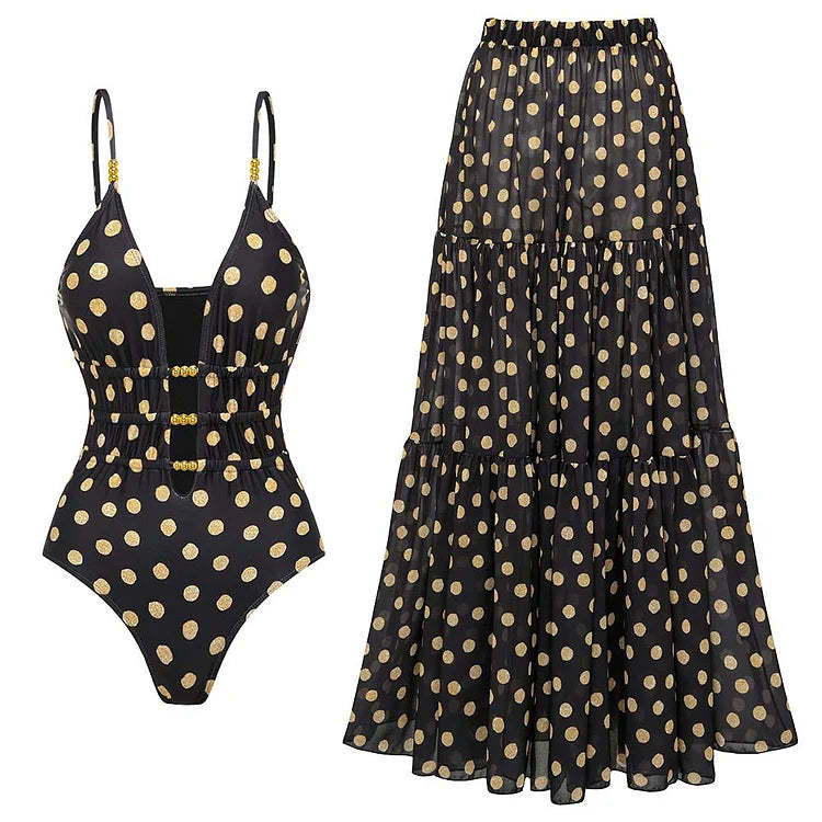 Turn heads at the shore with this chic one-piece swimsuit and matching skirt set, featuring by the ability to change outfits between sexiness and elegance. Designed for both style and ease, this flattering duo seamlessly transitions from lounging poolside to strolling beachfront cafés—no outfit change required.