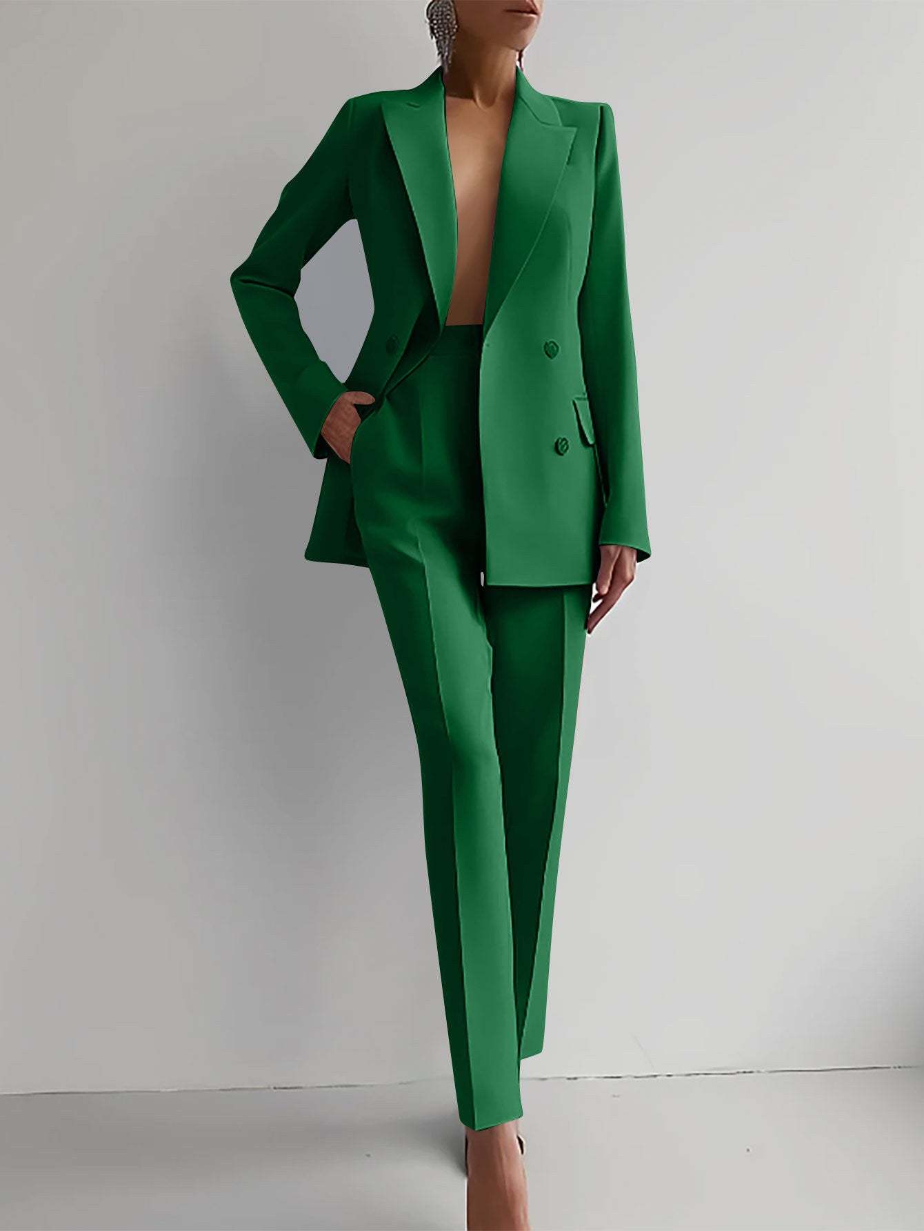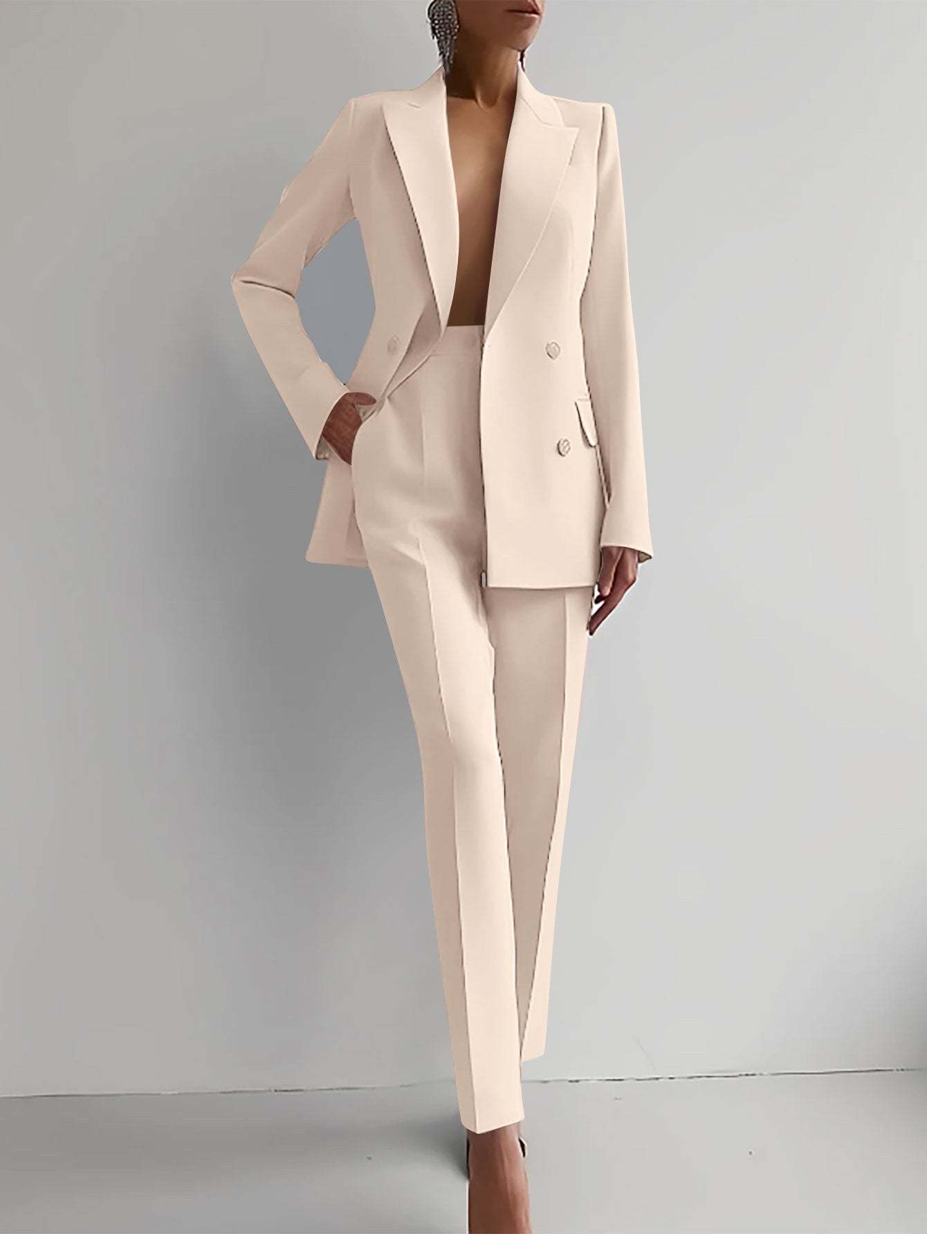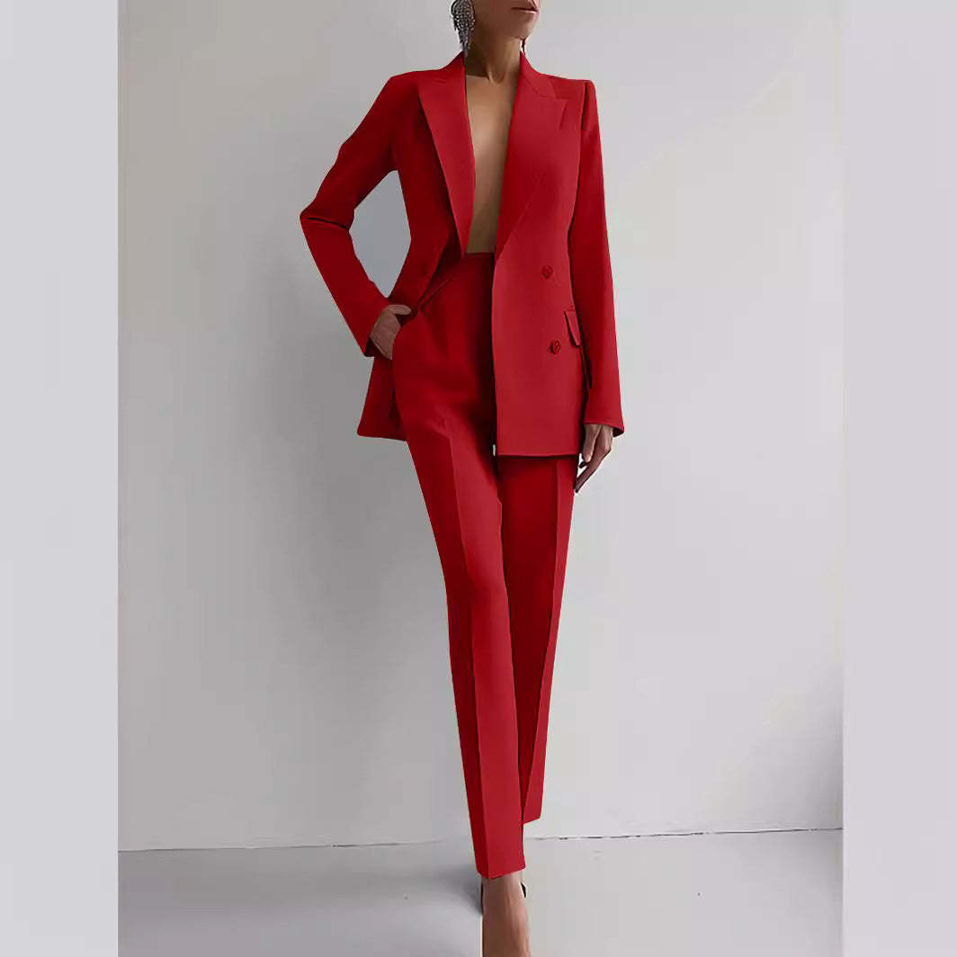 Casual Commuting Solid Color Blazer & High Waist Pants Set