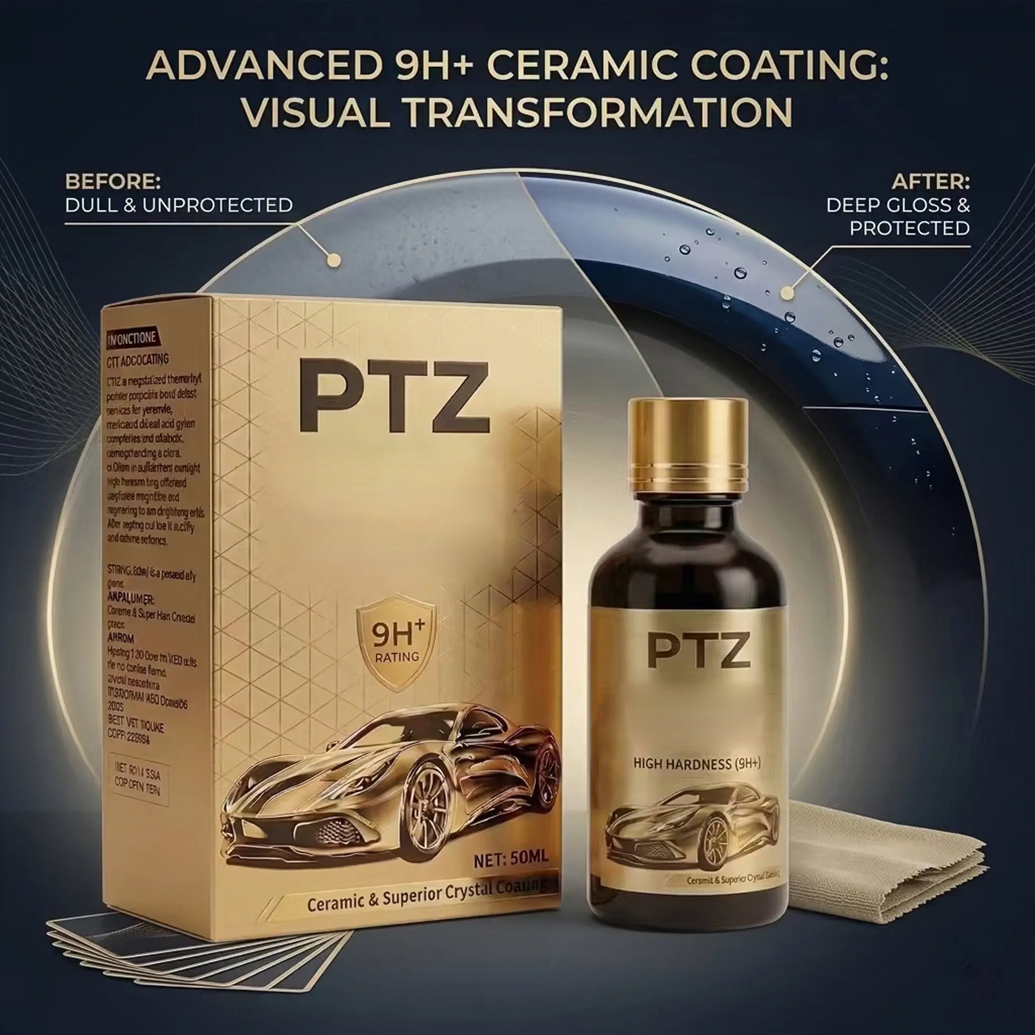1 × Ceramic Coating (50ml) • Applicator • Microfiber Towel