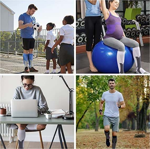You can wear our compression socks all day at home, at work, and while exercising. These mid-calf compression socks come with a light slim-fit design for a second-skin feel. They are woven with the latest knitting technology, optimizing the support around your ankle to get instant relief from swelling, sore muscles and joints, fallen arches, plantar fasciitis, varicose veins, and muscle injuries.
