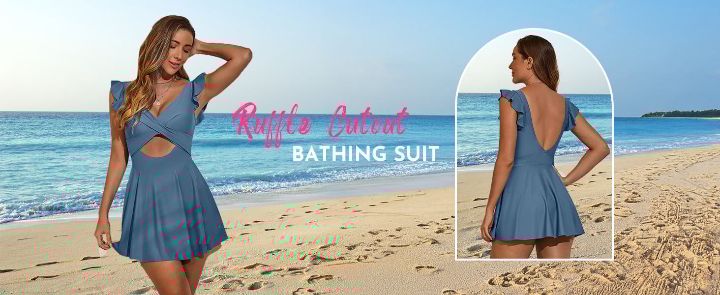Women's One Piece Swimsuit Ruffle Cutout Swimdress Tummy Control V Neck Wrap Swimwear